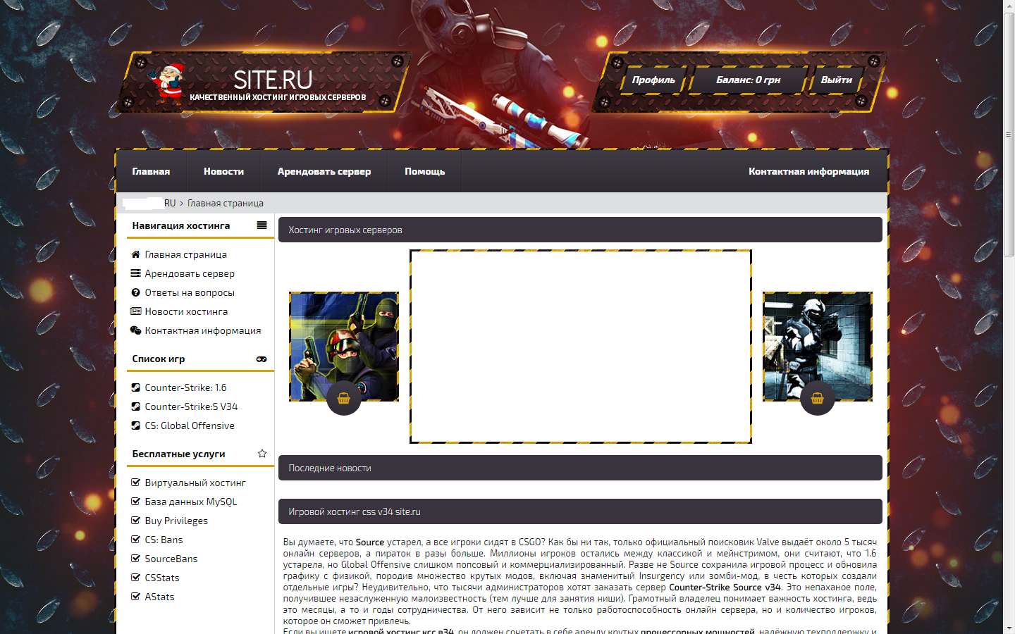 готовый шаблон для панели управления EGP V3 хостинга HOST5